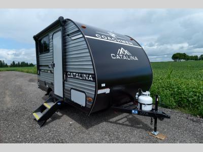 With any Catalina Summit Series 7' by Coachmen RV, you can create an easier adventure with the versatility and simplicity of the shorter lengths and lighter weights! Each includes a premium exterior graphics package, a smooth HD aluminum radius front, and EZ lube axles with leaf spring suspension. The exterior offers a heavy duty standard tongue jack, a diamond plate rock guard to protect against road debris, exterior RG-6 coax cabling and satellite prep, rear view camera prep, and flush mount baggage doors with radius corners for your outdoor gear. Inside, you will enjoy a premium JBL interior speaker, USB charging ports, seamless Thermofoil countertops throughout, a deep basin farm style sink for easy cleanup, and GE kitchen appliances. It's time to choose an affordable and maneuverable single axle trailer today!