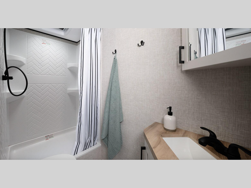 Sleeps 5 Length 22 ft 4 in Ext Width 8 ft Ext Height 10 ft 7 in Int Height 6 ft 9 in Interior Color Coastal Linen Hitch Weight 395 lbs GVWR 4995 lbs Dry Weight 3540 lbs Cargo Capacity 1455 lbs Fresh Water Capacity 20 gals Grey Water Capacity 20 gals Black Water Capacity 20 gals Tire Size ST225/75R15D Furnace BTU 18000 btu Number Of Bunks 2 Available Beds RV Queen Refrigerator Type 12V Refrigerator Size 8 cu ft Cooktop Burners 2 Number of Awnings 1 LP Tank Capacity 20 lbs Water Heater Capacity 6 gal Water Heater Type Gas/Electric DSI AC BTU 13500 btu Awning Info 13' Power with LED Lights Axle Count 1 Number of LP Tanks 1 Shower Type Tub/Shower Combo Similar Floorplans