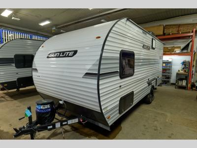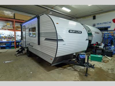 Each Sun Lite LTD travel trailer by Sunset Park RV is made with flexibility in mind. These lightweight models weigh under 3,000 lbs. for easy towing, and they offer best-in class interior storage for all your belongings. They are built with a one-piece PVC roof membrane and a durable rock guard that will help protect against rock and debris on the way to the campground. There is also an electric awning outside, along with a 100-watt solar kit, an outside shower, and more convenient features. You'll find a power roof vent in the bath, stylish window treatments, ball bearing drawer guides, and LED lights to name a few interior comforts.