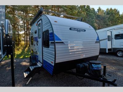 This Sunray travel trailer is the largest and most accommodating because it comes with a wet bath so that you can even take a shower in your trailer! There is a small kitchen on the interior that comes with a two-burner stove top, a refrigerator, and a microwave so that you can cook dinner without having to start a fire, and since it is indoors, you will be able to keep the bugs away while you prepare something delicious to eat. If you need to rinse off some gear, the outside shower will be especially useful, and if you need to charge your devices, use the USB ports. You will also find a Winegard HDTV antenna on this model. Add the available Classic option for 14" tires instead of the off-road version, color matching rims with Moon Caps, and Retro decor and Diner-Style countertops. The Sunray travel trailer from Sunset Park RV is an investment that you'll be able to enjoy for many years to come! These compact trailers are effortless to tow, so you won't need fancy equipment to have fun at the campsite. The Sunray is built upon a powder-coated steel chassis, and it has a one-piece PVC roof membrane to keep the RV protected. You'll find radial tires, a spare tire with carrier where available, and .024" aluminum siding on each model. You'll be able to remain comfortable when staying indoors thanks to the A/C and furnace. Another way that your camping experience will be elevated is with the Confidence Package which comes with a 100 W solar kit w/ controller installed, a roof rack, and more! We have 5 149 availableView InventorySpecificationsSleeps 3 Length 16 ft 8 in Ext Width 8 ft 6 in Ext Height 9 ft Int Height 6 ft 2 in Interior Color Grotto, Gray, Red, Turquoise Exterior Color White, Gray, Red, Black, Blue, Yellow, Orange Hitch Weight 310 lbs Dry Weight 2330 lbs Fresh Water Capacity 26 gals Grey Water Capacity 30 gals Black Water Capacity 30 gals Cooktop Burners 2 LP Tank Capacity 20 lbs Water Heater Capacity 6 gal Water Heater Type DSI Gas Axle Count 1 Number of LP Tanks 1 Shower Type Wet/Bath Shower