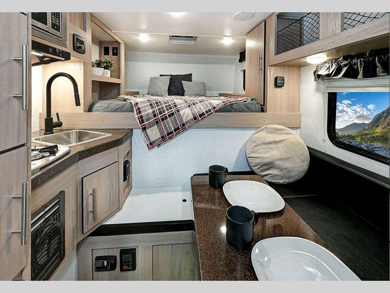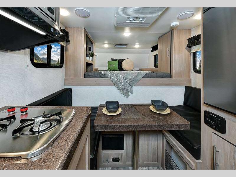 Sleeps 4 Length 17 ft 6 in Ext Width 8 ft 8 in Ext Height 0 ft Dry Weight 2488 lbs Fresh Water Capacity 21 gals Grey Water Capacity 5 gals Black Water Capacity 5 gals Furnace BTU 18000 btu Available Beds RV Queen Refrigerator Type 12V Cooktop Burners 2 Floor Length 7 ft 7 in Center of Gravity Front 33 in Water Heater Type Tankless On Demand Body Style Hard-Side Shower Type Wet/Bath Shower Electrical Service 30 amp Solar Wattage 200 watts